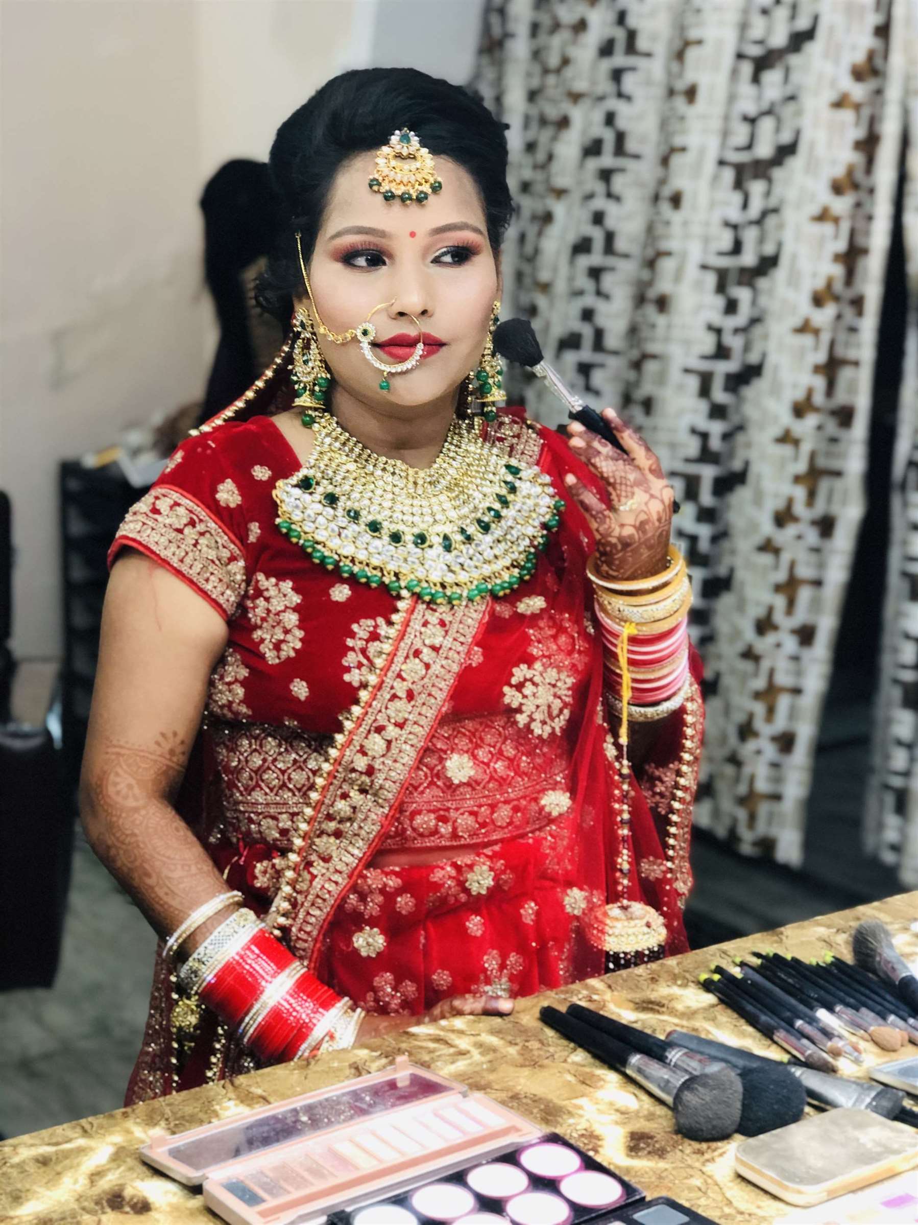 Meet Our renowned MUA, the epitome of elegance and expertise in the world of makeup artistry. With years of experience and a keen eye for detail, she has established herself as a renowned makeup artist. Specializing in bridal makeup, Our renowned MUA crafts stunning looks that blend tradition with contemporary flair, leaving brides feeling confident and radiant on their special day. Her personalized approach and dedication to perfection have earned her a loyal clientele who trust her to enhance their natural beauty and create unforgettable transformations. Our renowned MUA's passion for her craft shines through in every stroke of her brush, making her a sought-after name in the industry.