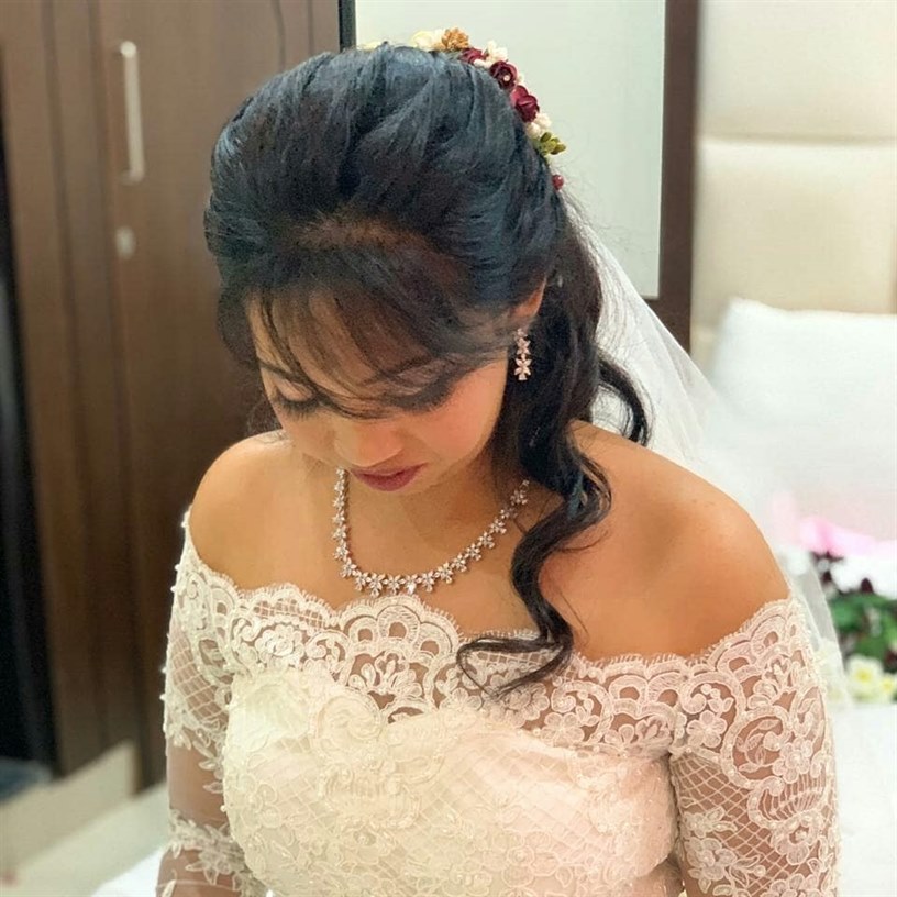 The bouquet of services offered by the makeup artist Bridal Makeup , Pre Bridal Makeup, Airbrush Makeup, HD Makeup, Hairstyling, Party Makeup, Destination Wedding Services, Makeup for Pre-Wedding Events
