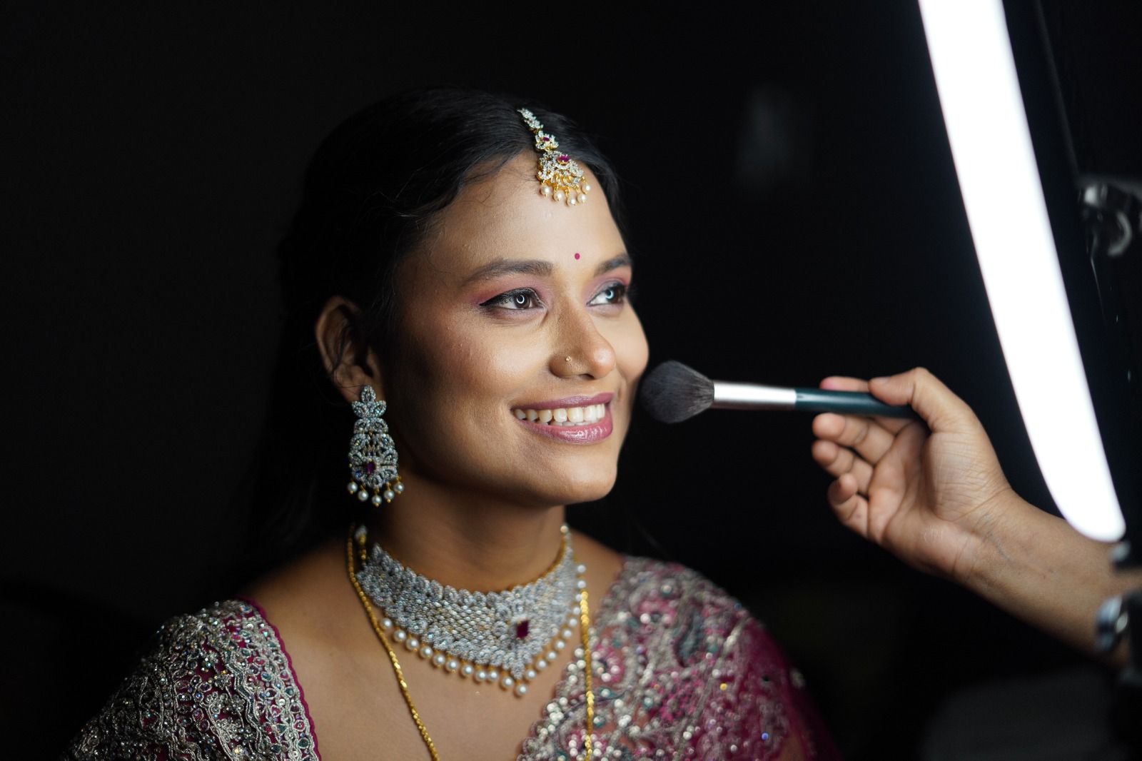 Meet Our renowned MUA, the epitome of elegance and expertise in the world of makeup artistry. With years of experience and a keen eye for detail, she has established herself as a renowned makeup artist. Specializing in bridal makeup, Our renowned MUA crafts stunning looks that blend tradition with contemporary flair, leaving brides feeling confident and radiant on their special day. Her personalized approach and dedication to perfection have earned her a loyal clientele who trust her to enhance their natural beauty and create unforgettable transformations. Our renowned MUA's passion for her craft shines through in every stroke of her brush, making her a sought-after name in the industry.