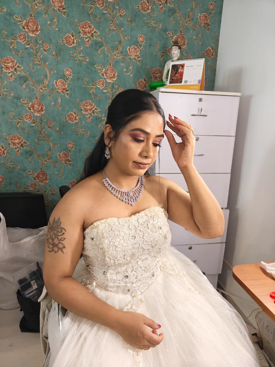 Meet Our renowned MUA, the epitome of elegance and expertise in the world of makeup artistry. With years of experience and a keen eye for detail, she has established herself as a renowned makeup artist. Specializing in bridal makeup, Our renowned MUA crafts stunning looks that blend tradition with contemporary flair, leaving brides feeling confident and radiant on their special day. Her personalized approach and dedication to perfection have earned her a loyal clientele who trust her to enhance their natural beauty and create unforgettable transformations. Our renowned MUA's passion for her craft shines through in every stroke of her brush, making her a sought-after name in the industry.